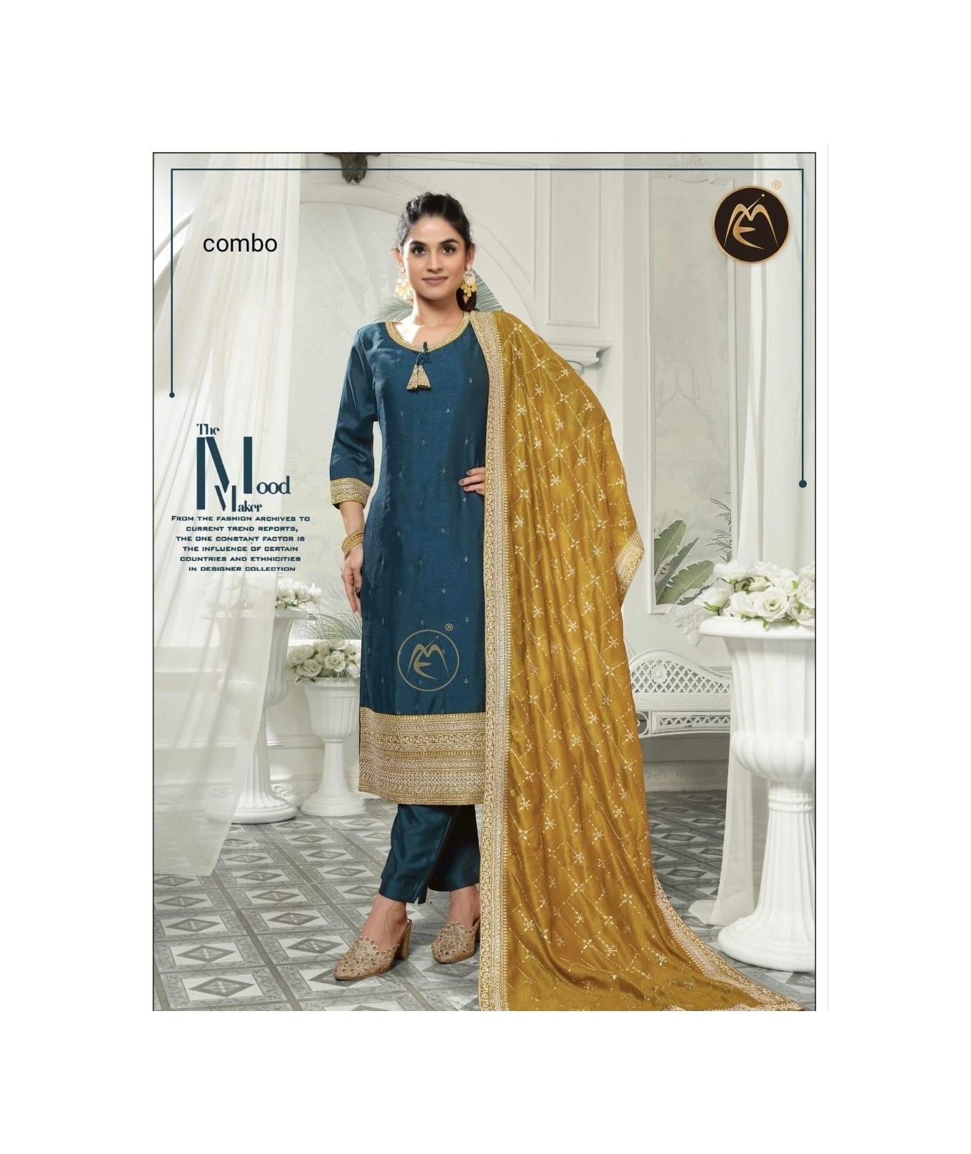 Elevate your festive wardrobe with this elegant teal suit set paired with a luxurious gold dupatta. The kurta features subtle embellishments and a richly embroidered hem, offering a refined yet graceful appeal. Complemented by matching pants and a beautifully detailed dupatta with zari-inspired patterns, this ensemble is perfect for weddings, festive occasions, and cultural celebrations. A timeless blend of sophistication and tradition.